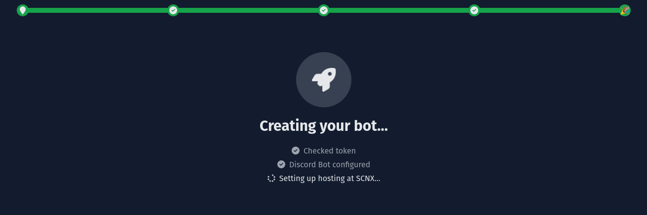 Als Nächstes wirst du dazu aufgefordert, den Token einzugeben, den du in Schritt 1 erhalten hast. Füge deinen Token dort ein und klicke auf "Prüfe meinen Token & erstelle den Bot". SCNX wird deinen Token überprüfen und dich zum nächsten Schritt weiterleiten, falls der Token gültig ist.